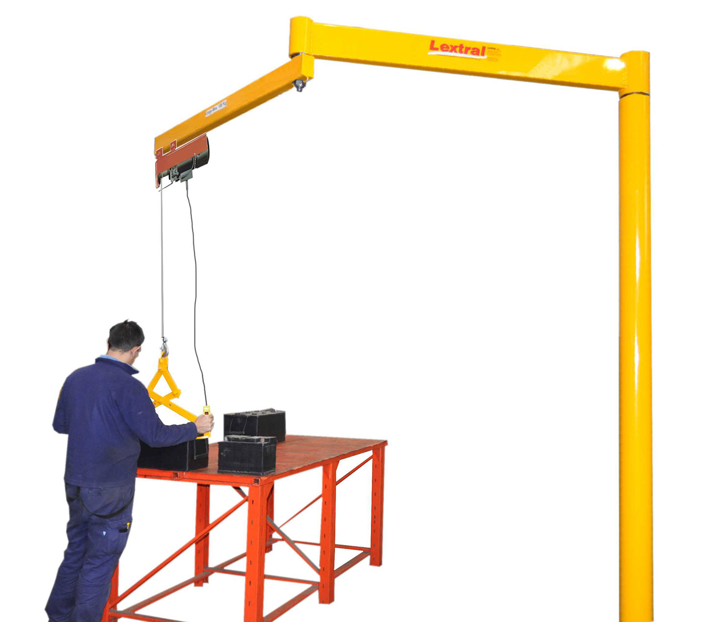 El manipulador permite cubrir la totalidad del área bajo la pluma con movimientos muy suaves, ideado para uso con balanceadores también puede ser empleado simplemente con un malacate eléctrico o manual en su extremo.